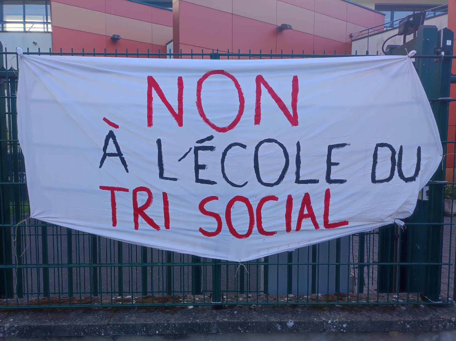 À #Rouen, opération banderoles pour dire #NonÀLÉcoleDuTriSocial #NonAuChocDesSavoirs #NousNeTrieronsPasNosÉlèves
