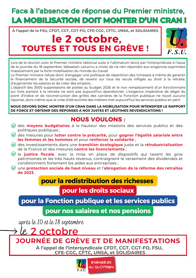Le SNES-FSU appelle à la grève le jeudi 2 octobre dans le cadre de l’appel de l’interpro.