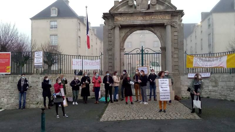 Cette dotation inacceptable est combattue par un boycott du CA le 24 février et un concert de casseroles tous les matins devant le lycée depuis la rentrée de février avec les enseignants du lycées , des parents d’élèves et des collègues du collège voisin F . Buhot, lui aussi bien mal doté pour la rentrée 2022.