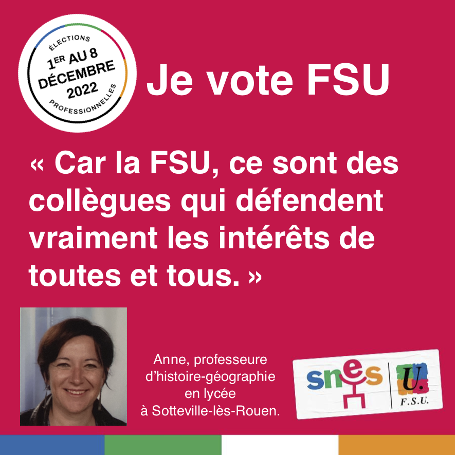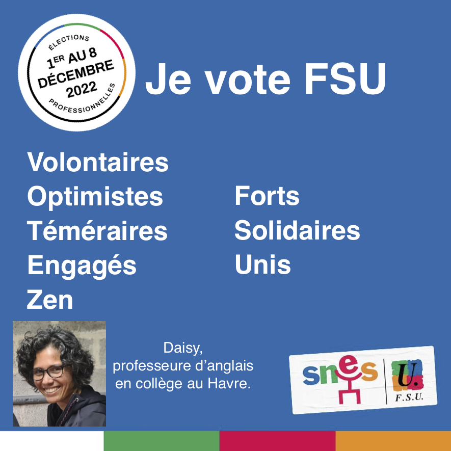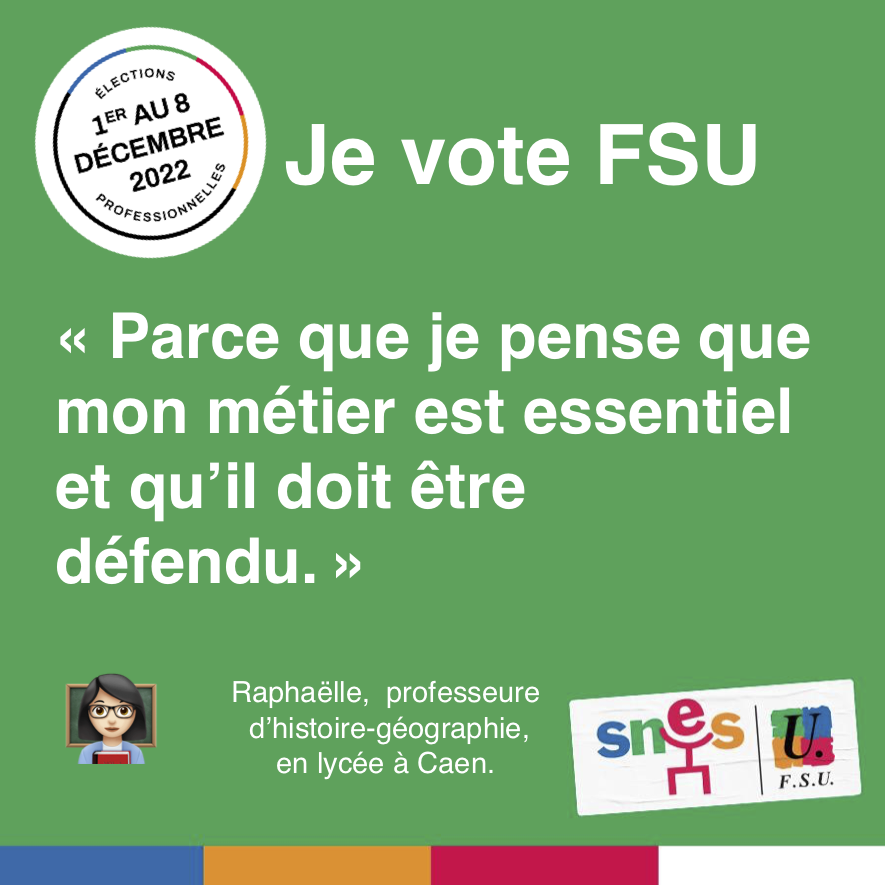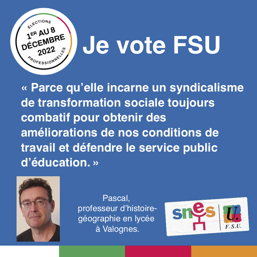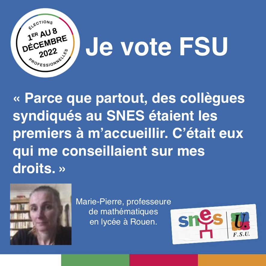 Je voterai FSU en 2022 en souvenir de tous ces collègues qui m’ont accueilli, en soutien de tous mes collègues."