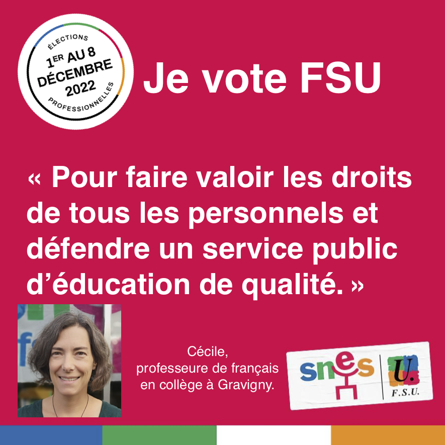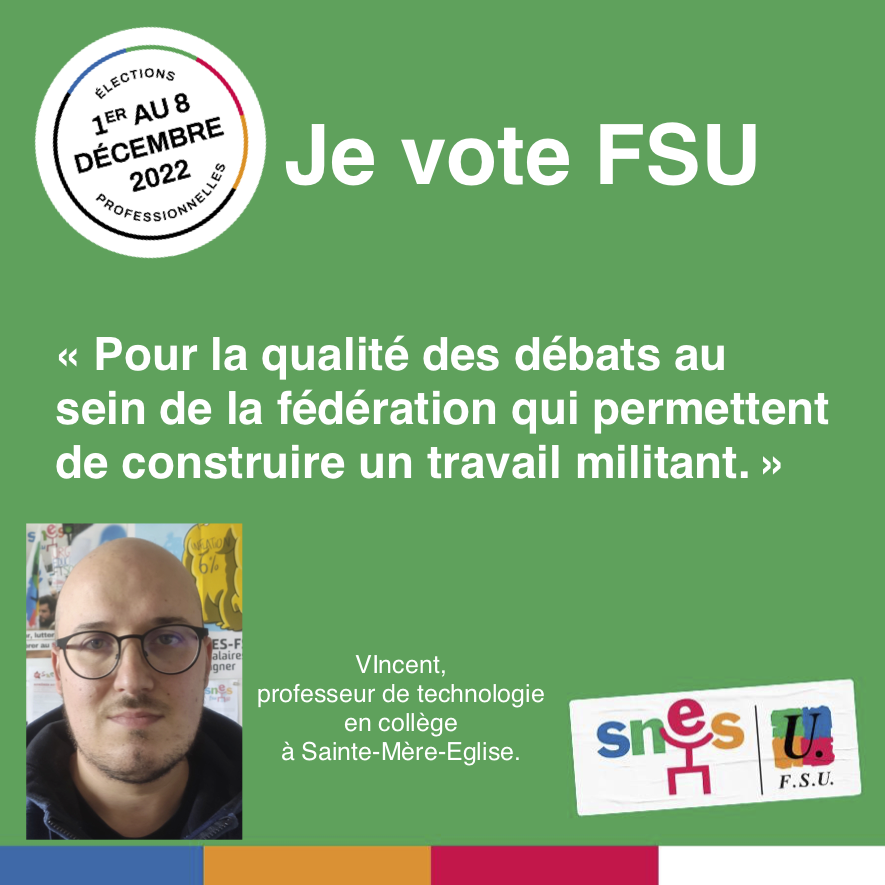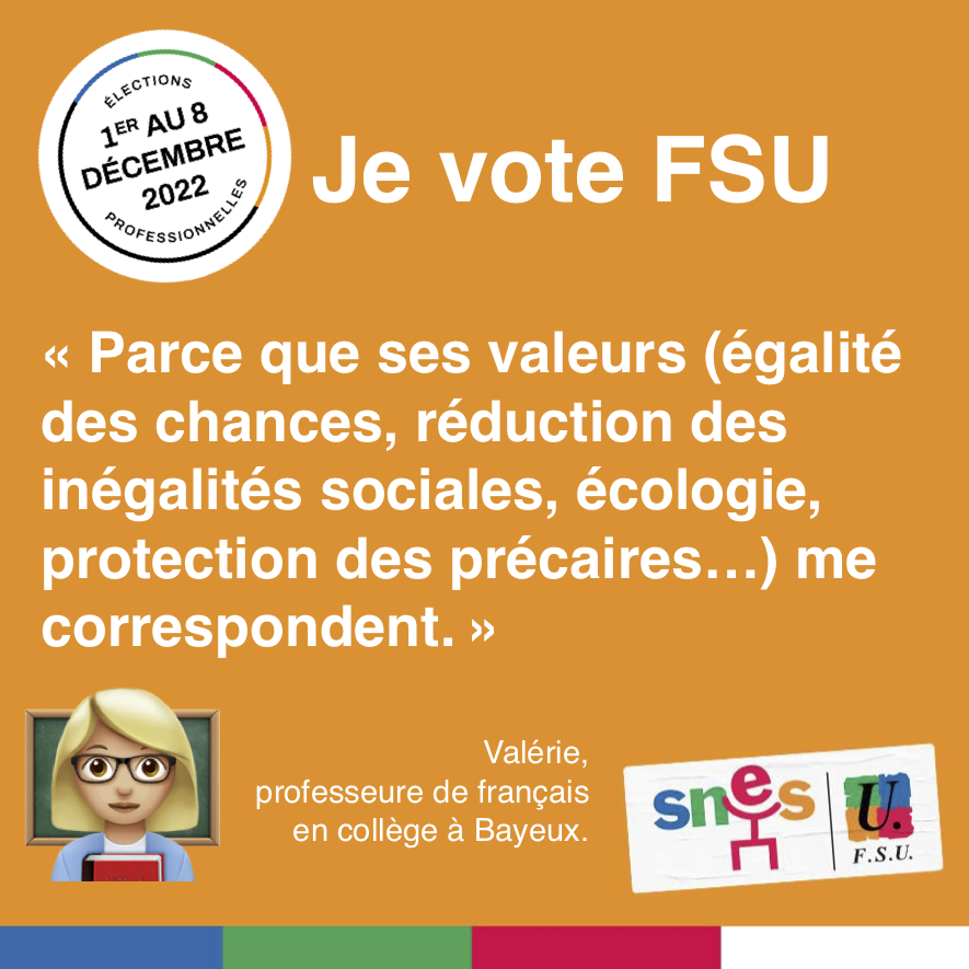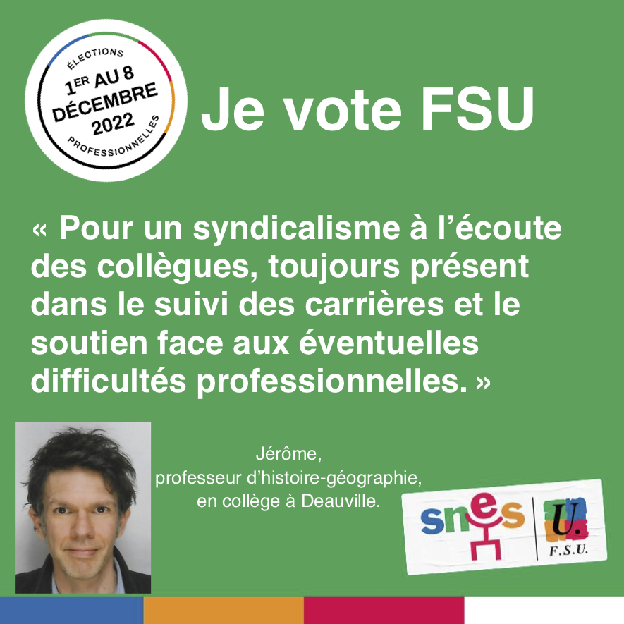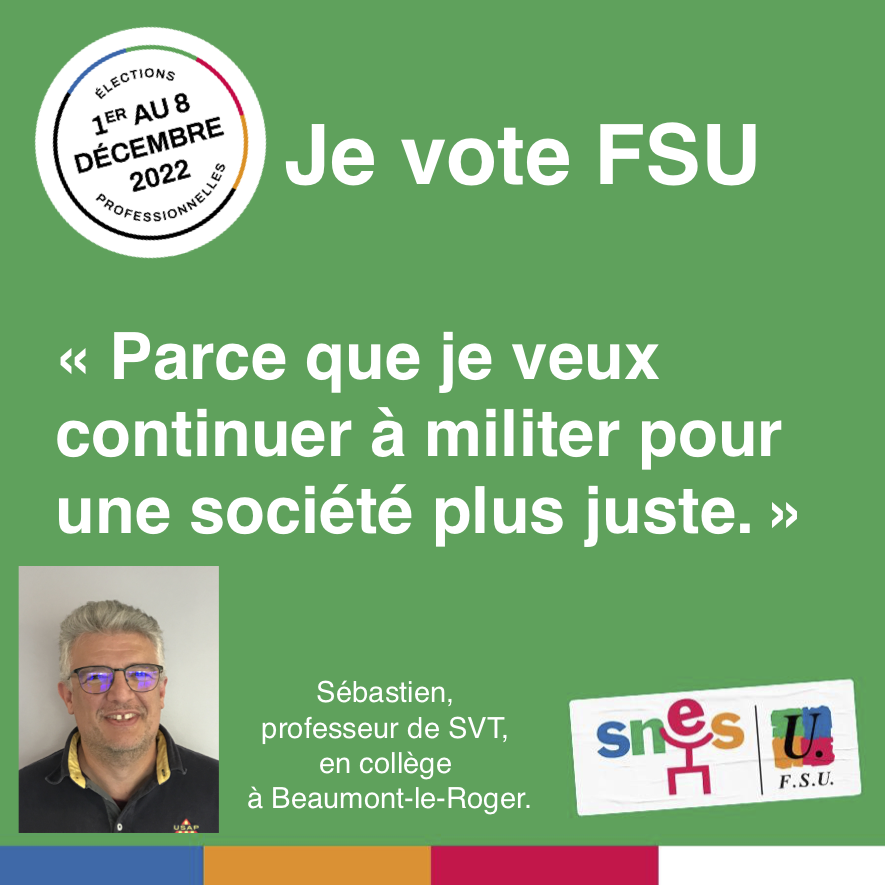 Je voterai FSU en 2022 en souvenir de tous ces collègues qui m’ont accueilli, en soutien de tous mes collègues."