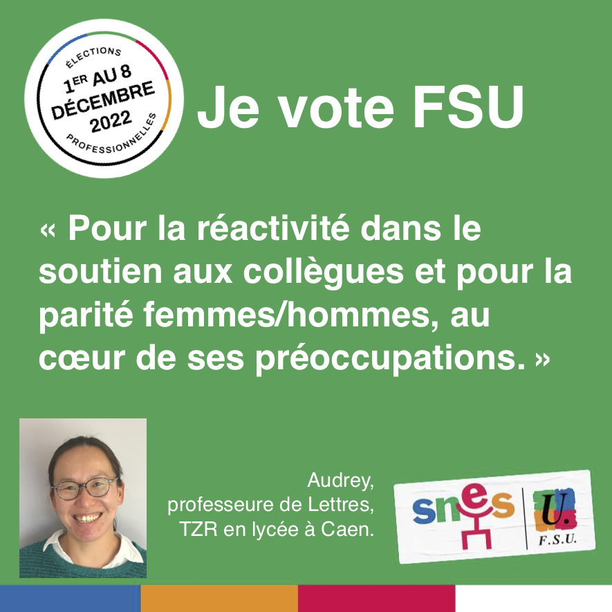 Chaque jour jusqu’au 8 décembre, retrouvez le témoignage d’un.e collègue de l’académie de Normandie qui explique pourquoi il ou elle votera FSU aux élections professionnelles.