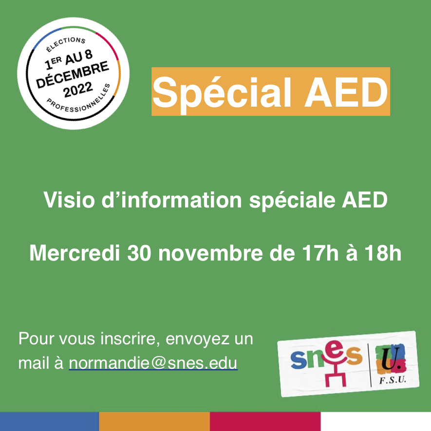 Le mercredi 30 novembre 2022 à 17h, le SNES-FSU vous invite à une réunion en visioconférence pour faire un tour rapide de nos droits et répondre à vos questions.